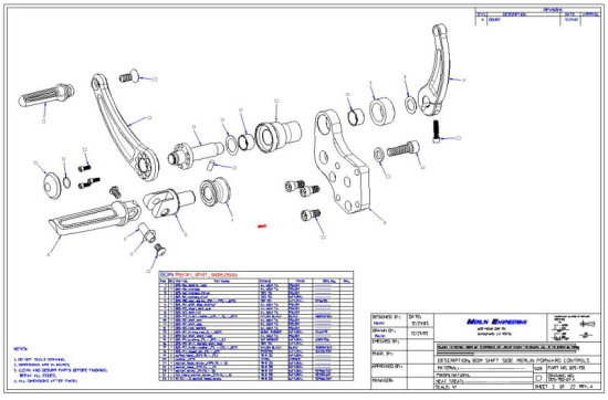 Assembly and bill of material prints can be made to DIN, ISO or custom COMPANY standards. Bills of material can include up to eight columns of information including location in assembly, part name, part number, material, individual drawing number, and revision just to name a few examples. |